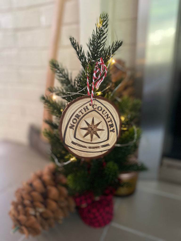 Hand-crafted rustic wood slice ornament with our official NCNST Emblem hand-branded into the surface. Each piece is natural pine and varies slightly. Imperfections are normal and are not considered defective. Approx. 3-4" across.